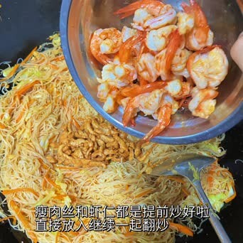 哎呀哎呀!今晚的“虾仁蔬菜炒粉丝”属于把我香迷糊了!得到了一家人的认可!这不,还要求我明晚继续炒一个吃[偷笑]实在是太香了,我自己都干了一大碗[偷笑]友友们,没啥胃口的时候就做这个粉丝吃吧,包你吃了还想吃😋